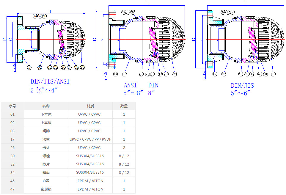 1) 材質(zhì): UPVC,CPVC,PPH,PVDF